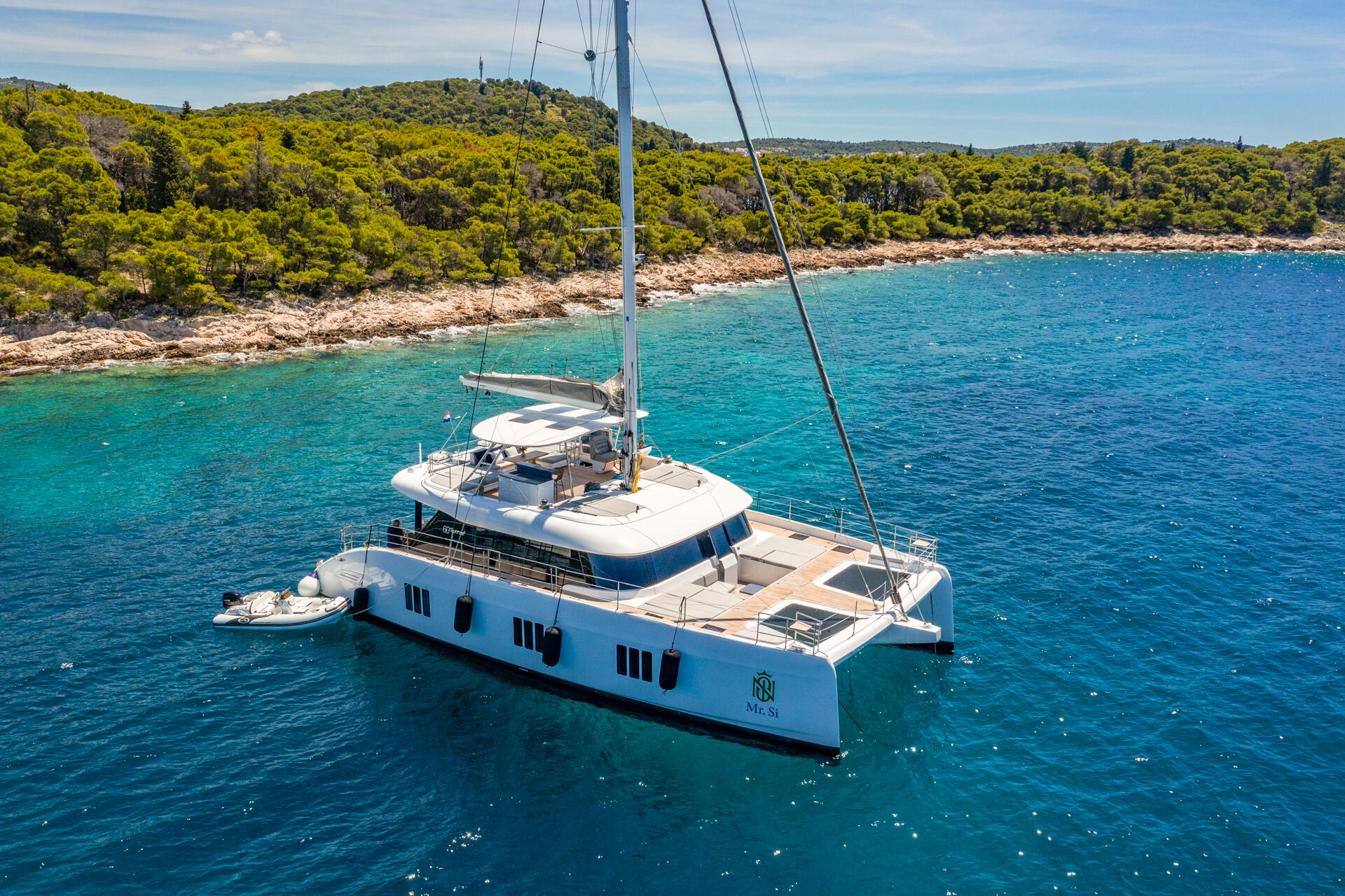 Built in 2023, Mr. Si is a modern sailing catamaran designed to deliver both comfort and reliable performance at sea. With her wide beam and well-balanced hulls, she offers impressive stability and smooth cruising in a variety of conditions. She reaches a maximum speed of approximately 10 knots and cruises comfortably at around 8 knots, making her perfectly suited for relaxed Adriatic navigation. Moreover, her elegant lines and thoughtfully arranged layout create a refined atmosphere on board, while maintaining practicality and ease of movement throughout the yacht.